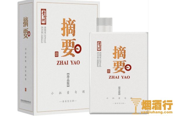摘要酒属于高档白酒,是金沙酒业推出的酱香型白酒系列,运用中国传统大曲酱香回沙工艺,以微量元素丰富的河水酿造而成,酿造时长超过30年,而且摘要酒的包装多样化,有礼盒装、尊享版等多个版本,适用于多个场合。