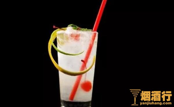配料:50毫升琴酒,20毫升柠檬汁,10毫升必得利石榴汁,冰镇苏打水。