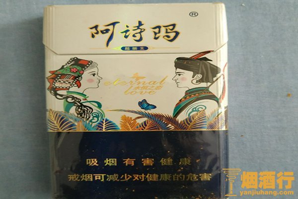 价格是15元/包。这款烟的滤嘴采用了白色衬底,其上配有深蓝色条纹,风格典雅别致。阿诗玛(永恒之恋)的烟气顺畅自然。