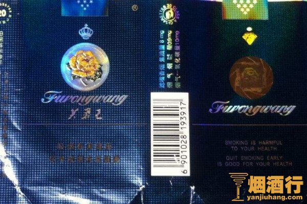芙蓉王(软蓝)外包装以深蓝色为主色调,开口朝上,正面印有金色图案,风格沉稳大气,且烟支设计简洁,抽起来口感柔和,烟香味纯正,刺激感较弱,烟气饱满,回味甘甜。