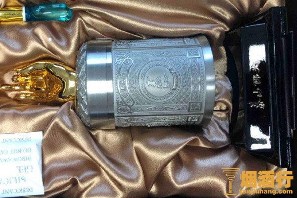 泰山佛光锡罐为罐装香烟,外包装上有一只金灿灿的佛手,造型奇特,金光灿灿十分奢华。