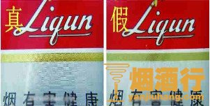2、看印刷的商标,真烟商标印的比较深,字体颜色一样,尤其是线条边缘处依然清晰可见;假烟多半是仿印,商标图案粗糙模糊,字体不够整齐,用手机照相功能放大看图案或者文字的边缘处有毛刺。