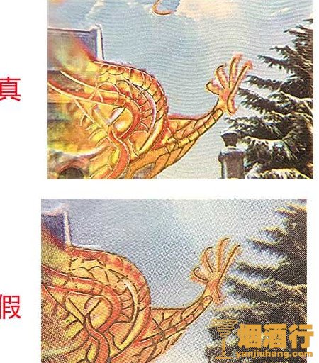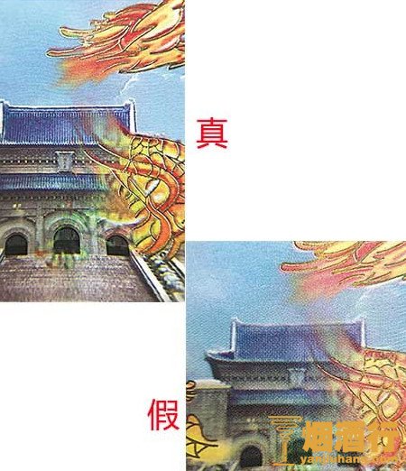 2、真烟烟盒在正面的龙纹和松枝印刷的很清晰,色彩很饱满;假烟烟盒正面的龙纹印刷模糊,不清晰,没有立体感还有粗糙的图案。反正真烟的烟盒图案都印的比较深都复杂,纹路都显示的很明显。