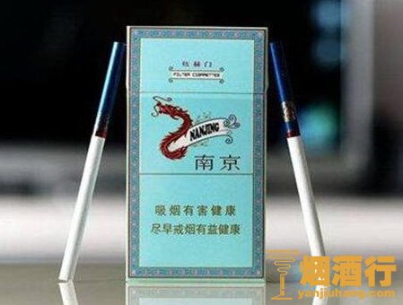 首先我们从外观上看,南京炫赫门香烟的正面是以青色为底色,看起来也有点像淡蓝色。烟盒的边框很像一些传统建筑上的雕花。烟盒的正中间是一条金龙,背面中心的位子是南京香烟标志性的图案辟邪神兽图。香烟整体上典雅与现代相结合,看起来比较的明快且富有贵气。