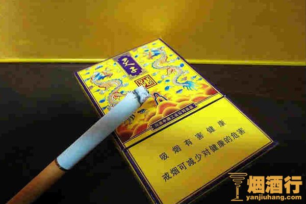 这款香烟的外包装十分的富丽华贵,以金黄色作为主色调,采用乾隆年代的“海水江崖云龙”图样,给人十足的帝王尊贵之前,庄重典雅。烟盒拥有侧翻式和翻盖式两种规格,一般能有这样的设计的香烟在整个烟草市场上都比较少见。