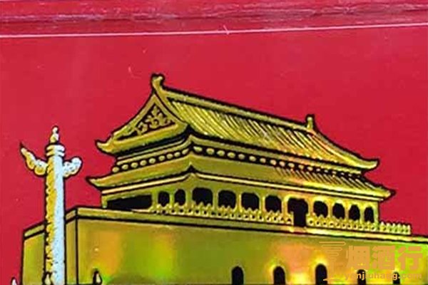 2、看线的颜色:假烟烟条盒及小盒天安门图案第一个门左下角两条黑色虚线常为黄色;而真烟没有颜色。