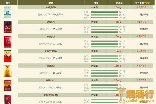 雄狮香烟价格表图