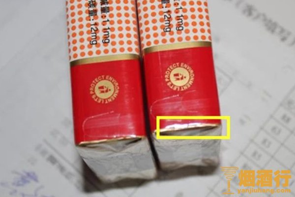 2、烟盒底部是否有空隙:真烟烟盒底部有一个小的空隙,假烟底部封得很紧。