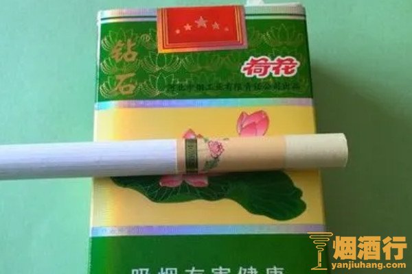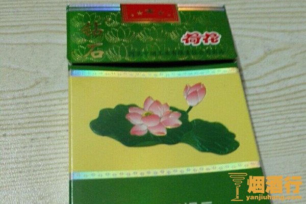 钻石(硬荷花)是荷花香烟中卖得最好的一款,该产品的包装以绿色和黄色为主,正面印有荷花图案,且口感柔和,味道纯正,带有一股植物清香,给人的满足感很强。