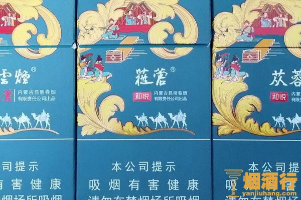 云烟(苁蓉和悦)外包装以浅蓝色为主,烟包印刷有一片硕大的金色烟叶,其上的人物图案栩栩如生,烟支入口醇和,通透性极好,香精的味道不明显,烟气清雅绵长,非常舒畅。