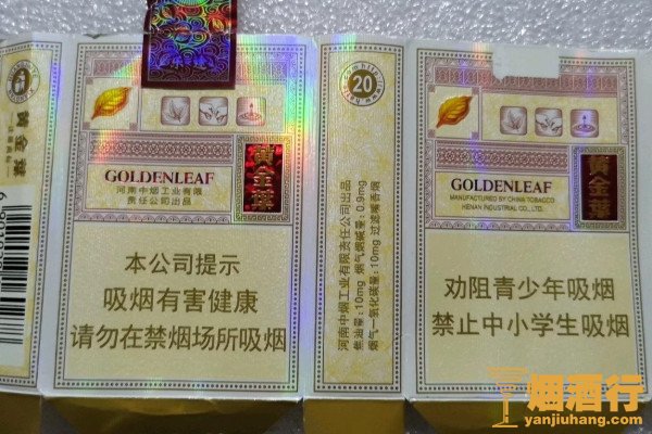 黄金叶(小天叶)外包装为白色,带有金色的叶片纹路,其焦油含量为8毫克,烟气中的焦油含量为0.8毫克,烟支入口十分醇和,淡雅闲逸,烟气温润流畅,不干不燥。