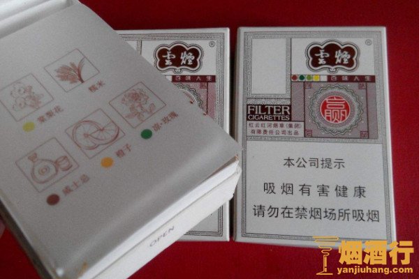 云烟(百味人生)的外包装以素雅的白色作为主色调,整体风格风格简约而不简单,烟支带有五种不同味道的爆珠,分别是棠梨花、威士忌、凉玫瑰、糯米、甜橙,烟气绵长飘逸。
