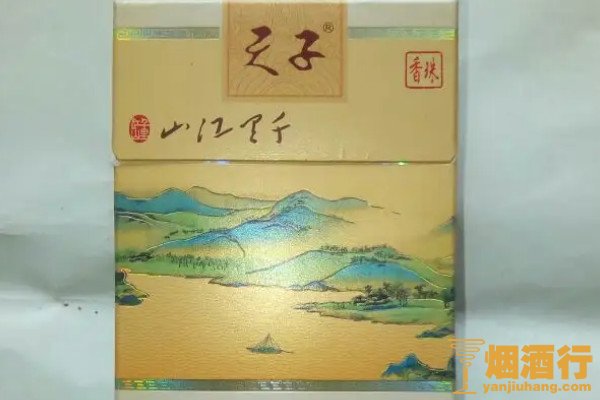 天子(千里江山细支)秉承天子系列香烟的设计风格,意境深远,烟支长97毫米,过滤嘴带有降焦孔,入口柔和丝滑,以清香作为主体,结合蜜甜的香气风格,突出优雅自然的味道。