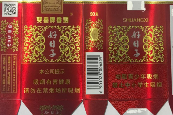 双喜(软盛世好日子)以深红色为包装主色调,软盒包装,拿在手上比较舒适,不会感觉到割手,在30元价位中算的上性价比比较高的一款。