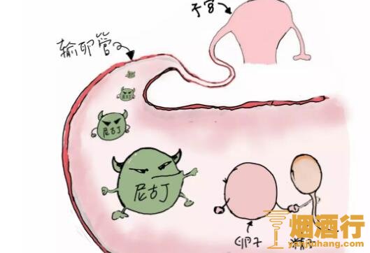尼古丁会导致受精卵从输卵管到子宫的这一路上不顺畅,进而导致受精卵还没到达子宫,输卵管异位妊娠的风险增加,那是因为就着床在输卵管内,引起胎儿畸形等疾病。