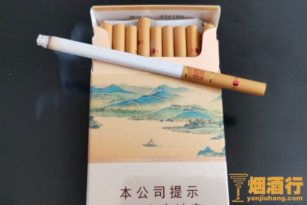 天子(千里江山细支)颜色为淡黄色,描线为炫彩色,烟盒上印刷有青山绿色,意境深远,烟支带有爆珠,细嗅下有淡淡的烟草香味,入口吸阻较小,爆珠捏碎后,有甜润感。