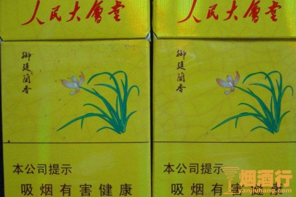人民大会堂(御廷兰香)外包装颜色为明黄色,商标图案为四瓣兰花,整体风格典雅而又华丽,烟支长97毫米,细嗅下有一缕清馨的兰花香味,入口纯净自然,回味无穷。